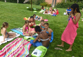 | Dear parents, Although it rained in the morning yesterday, we were able to go to the local swimming pool in Reus in the afternoon. When we arrived, there was nobody else there and so we had the whole swimming pool to ourselves and we were able to have an even better time! At night, our monitors had prepared a gymkhana. There were four different activities that gave us clues about the villain we had to look for. The first to find the villain were the children in the Red team. Well done! Nevertheless, everyone received a prize for having worked hard! Here are some photos for you! We hope you like them. | |||