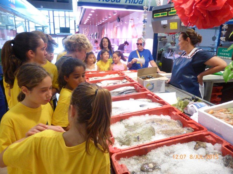 Yesterday we started our English classes, we took part in a workshop with chef Celia who showed us how to make fruit skewers and we went to the local market with our teachers. There, we went to the different stalls and learned about what we can buy there.